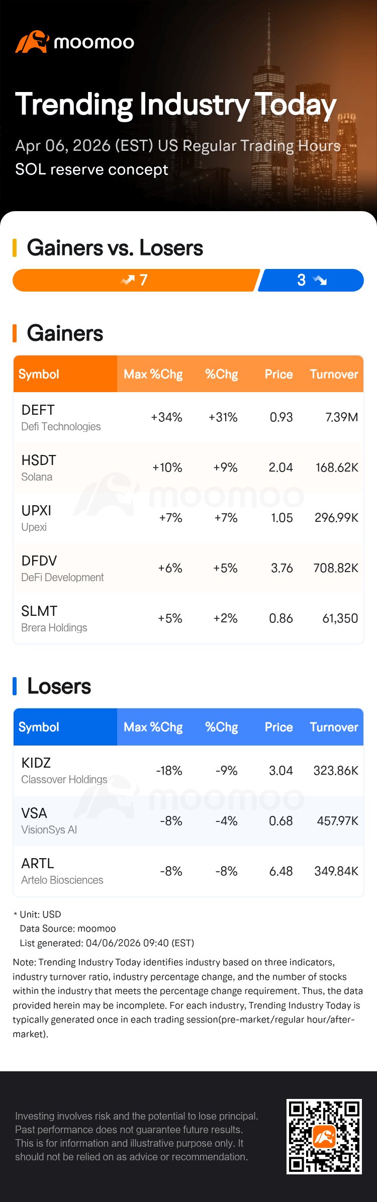 Moomoo reports Defi Technologies tops gains in SOL reserve concept stocks. The trending industry sees crypto-related surges today. Investors flock to blockchain innovators. This momentum highlights DeFi's market edge. Watch for volatility in the sector. Read more about this...
