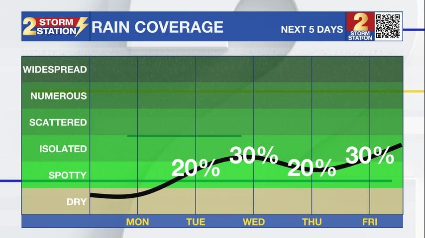Dry Today, Spotty Showers Later This Week