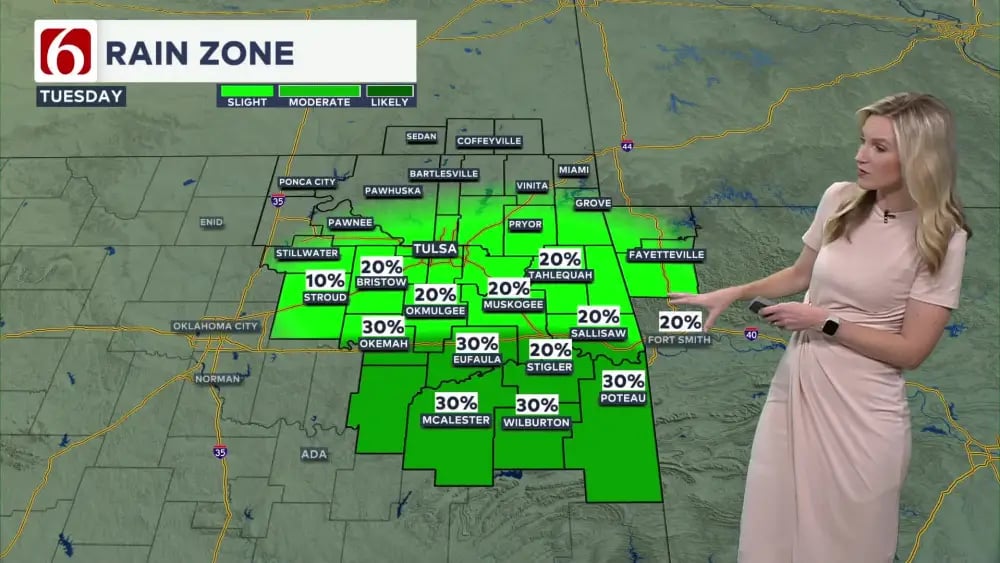 News On 6 forecasts sprinkles and showers in southern areas before a stronger system rolls in by week's end. Residents prepare for heavier rain and possible storms. Current mild weather gives way to gusty winds and thunderstorms. Check updates for travel and outdoor plans. Stay safe as conditions intensify. Read more about this...